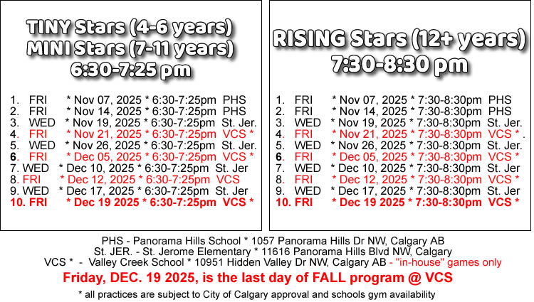 for 2025 FALL season (Nov 07 – Dec 19 2025)